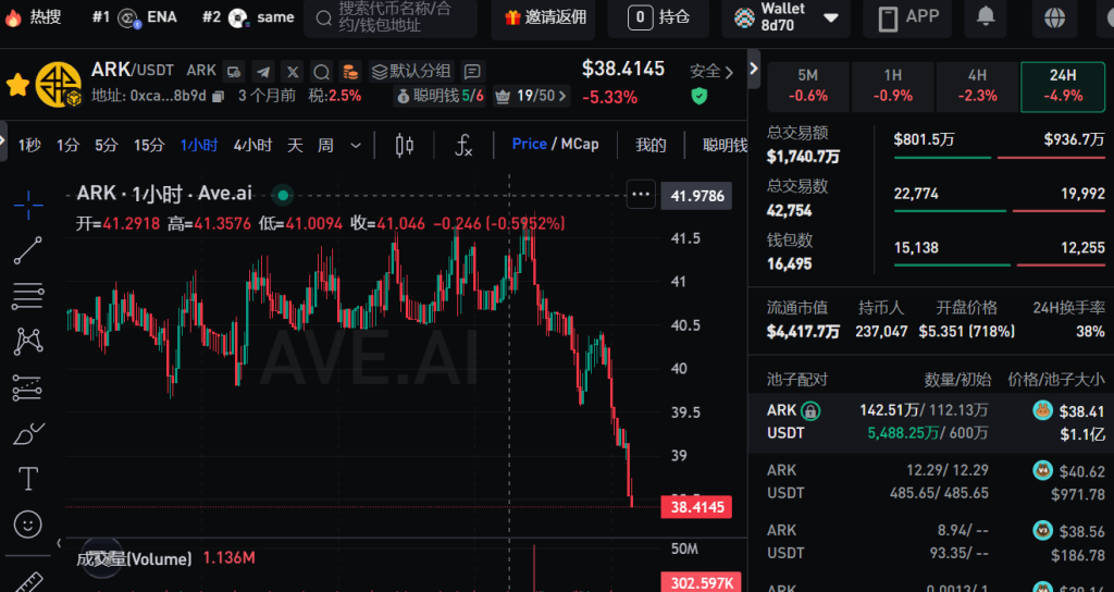 7:这段时间正好考验ark的控价模组对于这种异常事件的价格稳定机制。目前数据上还没提现出来,预计价格如果下跌突破37一带,可以看到模组的工作原理