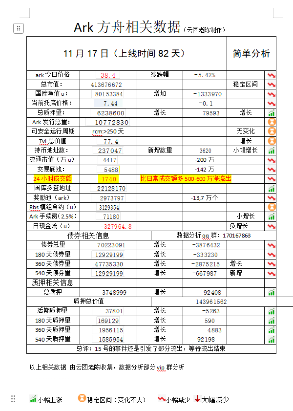从数据表上来看,日现金流 第一次出现负增长 ,日净流出327万u ,成交额比日常多600万,主要减少的是债券,减少了387万u,质押量倒是正增长,主要减少的是活期的。毕竟活期的可以马上解锁。奖励池数量倒是减少不多,只是减少13.7万个,估计数据上会难看个几天